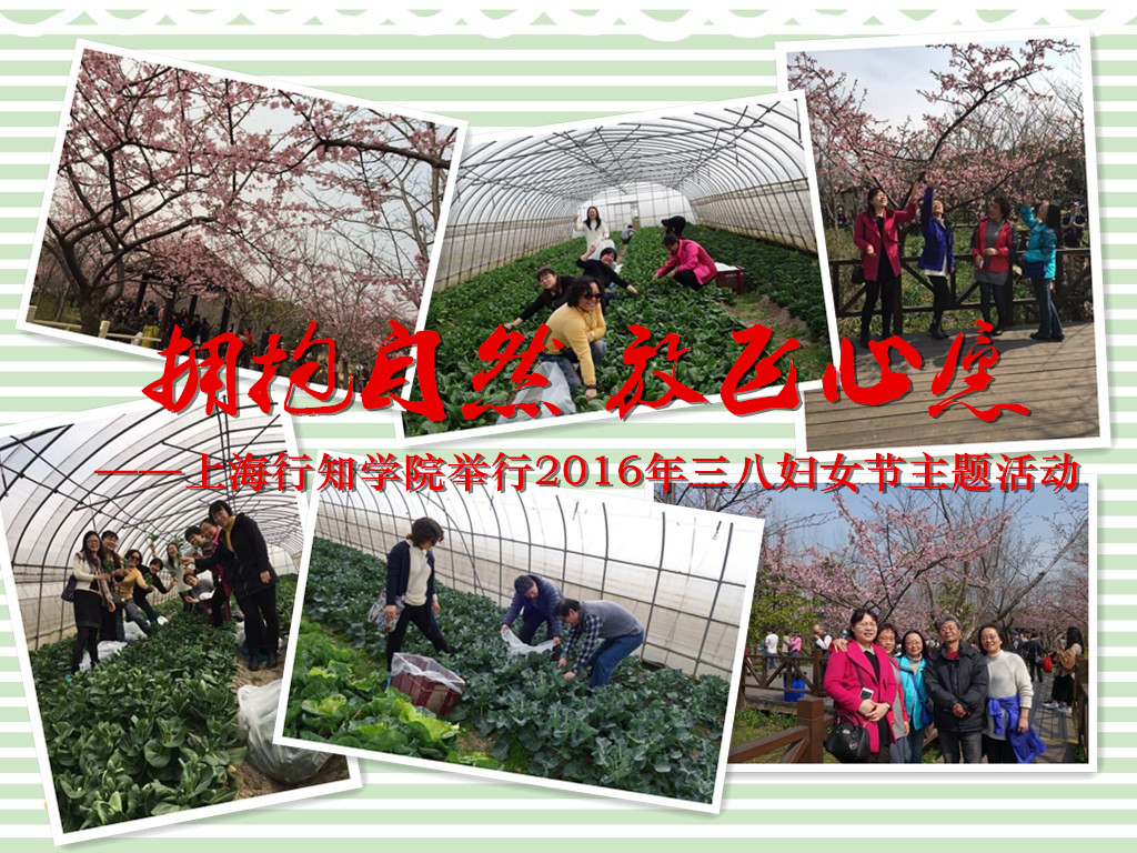 为进一步丰富教职工业余生活,强化团队合作精神,在2016年妇女节来临之际,上海行知学院于2016年3月4日下午举行“拥抱自然 放飞心愿”主题活动。宝山业大、二业中全体工会会员出席活动。活动分为“樱花树下话情谊、蔬菜地里作农活、瓜果园中品野趣”三个环节。