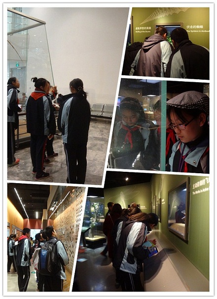 在“演化之道”、“生存智慧”、“缤纷生命”等展区,学生们带着学习任务,就“鸟类的四季迁徙场景和羽色变化”、“生物的18个捕食策略”、“灵长类与人类的相似性”等他们所感兴趣的科学内容,开展了小组合作式的探究实践活动。