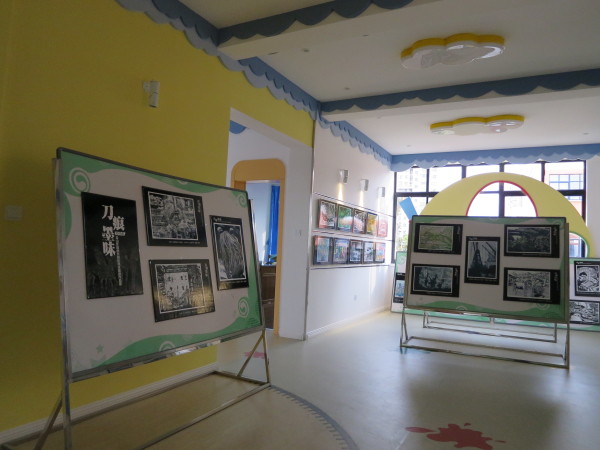 综合楼缤纷活泼的墙面装饰和黑白简洁,稳重高远的版画作品相映成趣。就像我们的版画艺术既有深厚的底蕴,也有蓬勃的生命力。