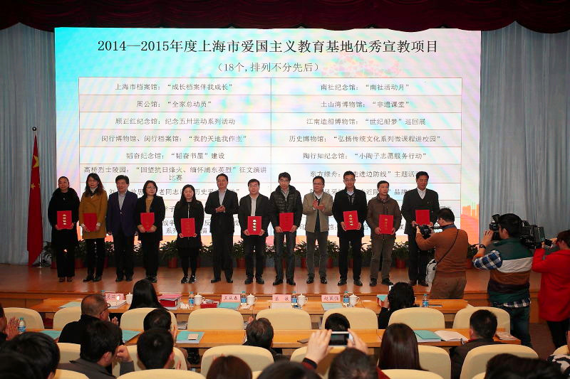 3月11日下午,2016年上海爱国主义教育基地工作推进会暨“三公里文化服务圈”集体签约仪式在上海城市规划馆举行。上海市委宣传部副部长、文明办主任潘敏出席会议并作重要讲话。会上部署了2016年爱国主义教育基地工作,表彰了2014-2015年度上海市爱国主义教育基地先进单位和优秀宣教项目,上海市陶行知纪念馆的“小陶子志愿服务行动”被授予“上海市爱国主义教育基地优秀宣教项目”。