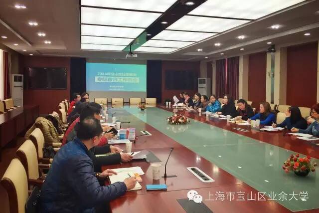会议主要通报了社区教育指导中心2016年的工作计划,下发全年工作任务分解表,分别解读了学分银行宝山分部2016年工作计划、2016年“乐学讲堂”实施方案、2016年“乐学团队”建设整体推进计划,并介绍了第六届上海社区网上读书活动、《上海社区教育》杂志征订和社区教育专职教师文化休闲体验课程建设等事项。