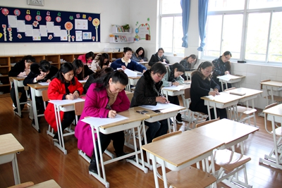 2016年3月25日,同达小学放学后的校园迎来了一次不一样的体验活动。老师们坐进了学生的教室,认真专注的开始答卷……这是同达小学本学期教师基本功训练项目之一:“站在孩子的角度看教学”学习体验活动。与孩子一样解答语文、数学、英语、自然练习卷,不同年级段的老师了解着学科教学的难度与要求;和孩子一样面对练习,老师们体验着学生面对检测的忐忑与希望;像孩子一样认真写、仔细算、反复推敲,品味着学生的不易,思考着教学的关注点。体验活动让老师们蹲下身子,和孩子用同样的角度来看教学。体验活动,带给老师们更多的是对今后教学改进的思考。