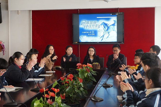 活动中,上海财经大学会计学院团委干事们向我校学生介绍了大学学生会的运作,同时展现了大学丰富多彩的生活。最让同学们感兴趣的就是针对如何做好生涯规划的经验交流,比如在如何确立学习目标,如何平衡兴趣和特长,如何合理安排自己的时间等这些实际的问题上,为我们学生提供了许多经验和方法。