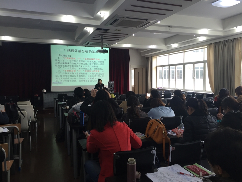 近日,区高三语文“作文教学”主题教研活动在通河中学开展,活动包括通河中学骨干教师的作文指导教学实践课以及区学科教研员老师关于“理性思辨”的讲座两大内容。上海师范大学詹丹教授到场指导,全区兄弟学校语文老师参与研讨。