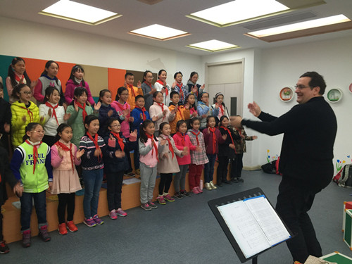 4月6日下午,上海师范大学王瑾老师领衔的合唱指导团成员Jordi和翻译贝贝老师来到二中心,指导学校的合唱团活动。