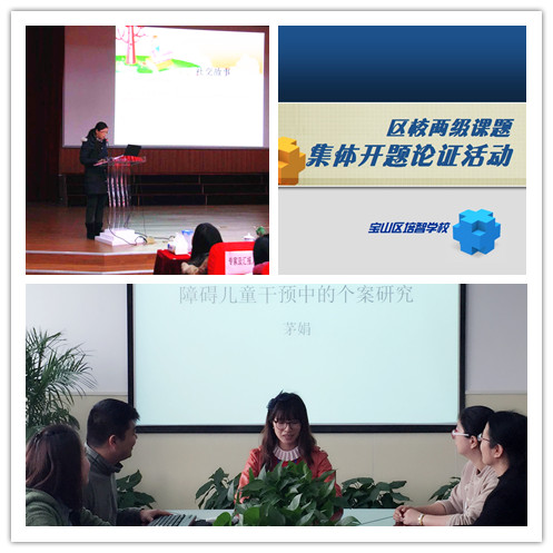 2016年经申报、审核,宝山培智共有23个课题立项,其中有3个课题入选区级一般课题。为了帮助教师系统地鉴别课题研究的价值,分析课题研究的条件、完善研究的方案,4月上旬学校就2016年立项的课题进行了集体开题论证,并推选出肖老师作为学校代表参加区级一般课题的集体开题论证。肖老师就自己的研究课题《社会戏剧游戏教学提高自闭症学生社交技能的个案研究》的理论基础、课题研究的目标、内容、思路、方法及课题研究的进展作了具体报告。区教科室教研员充分肯定了课题的研究价值和课题组前期所做的大量准备工作,然后就课题研究内容的具体方法、课题研究的方向性、课题研究的目标和内容等方面提出了宝贵的意见,建议进一步明晰课程建设,并将版块树立清楚,细化研究内容。之后,肖老师还与各位与会老师进行了充分的研讨并交换意见。
