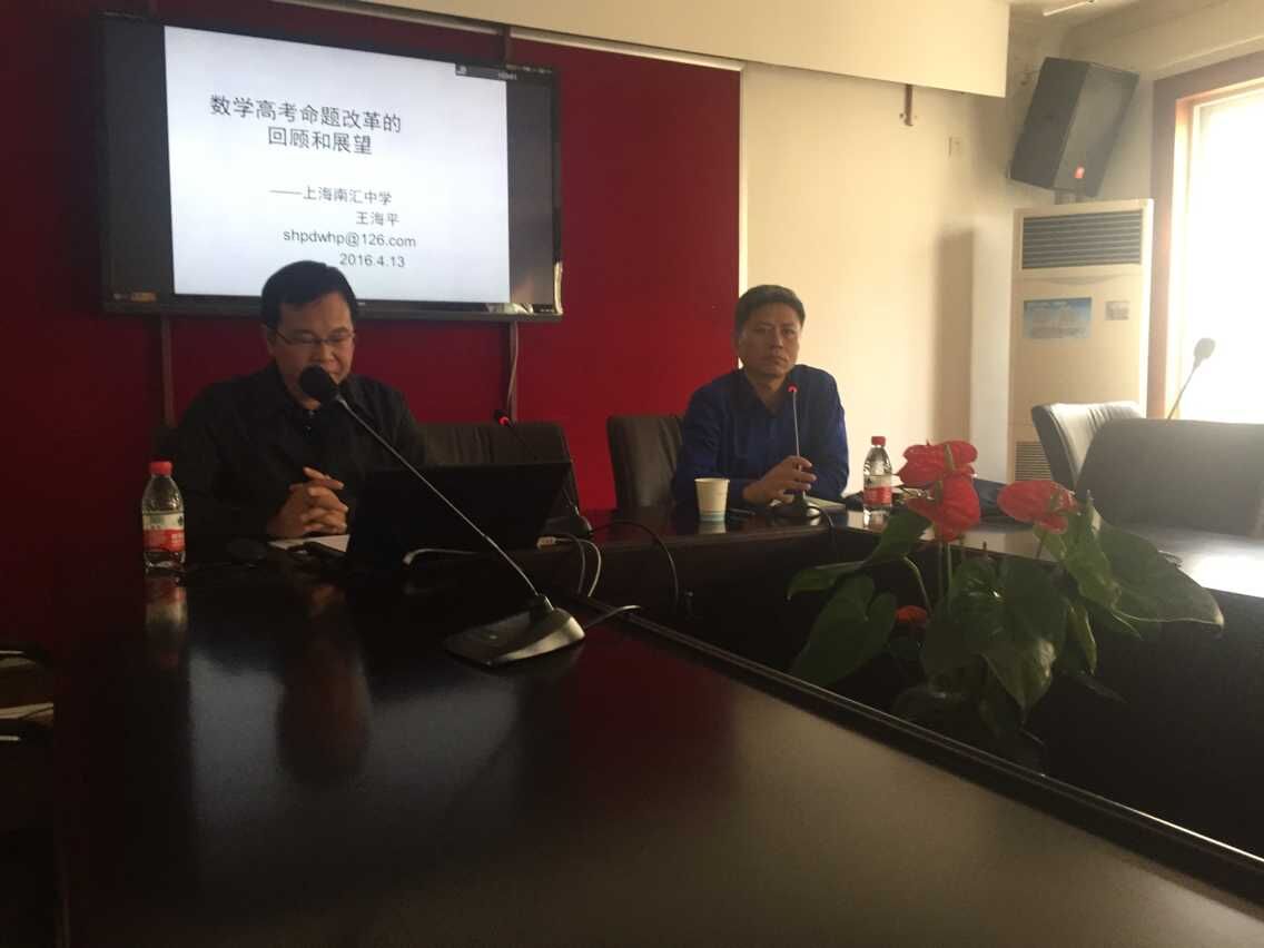 近日,宝山区赵传义名师工作室携手上海市行知实验中学共同举行了主题为“高三复习的针对性和着力点”的数学教学研修活动。本次活动特邀上海市数学特级教师、上海市双名工程数学基地主持人王海平作“2016上海数学考试手册解读及下阶段高三复习策略”主旨讲座。
