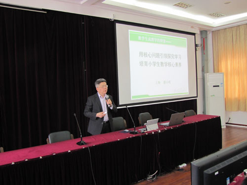 4月15上午,在朱肃霞副院长的主持下,上海市特级教师潘小明为全体教师作了题为《用核心问题引领探究学习,培育小学生数学核心素养》的专题讲座。