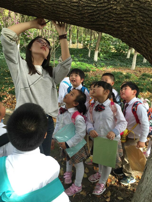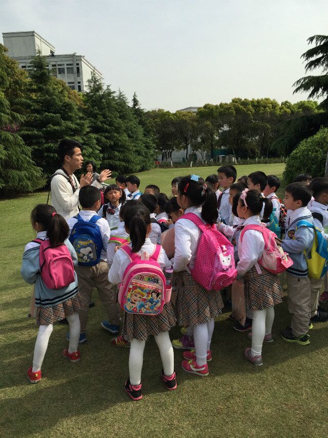 上海大学自然博学会的大学生们携手学府涵青幼儿园,开展“徒步远行,探究自然”活动。