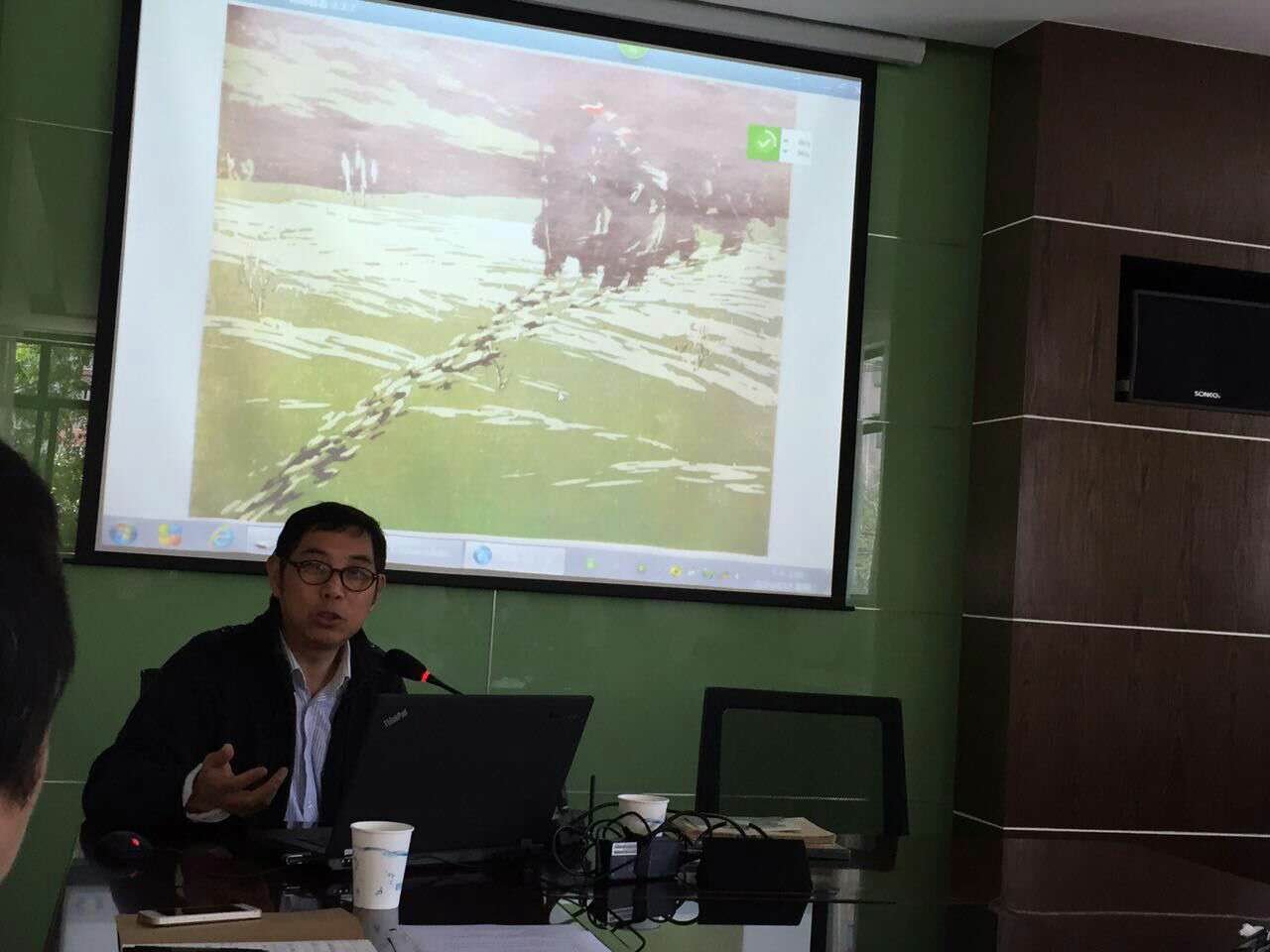 讲座中,周老师向我们介绍了当时北大荒版画成员中两位重量级大师,带领我们欣赏了他们的作品,为我们剖析了作品的时代背景、色彩的布局和作者的创作思想。