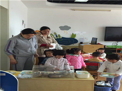 2016年4月21日,宝山区四季万科幼儿园与四季花城幼儿园的二十多位保育员、保健老师、保教主任来我园观摩小、中、大班半日活动中保教“三位一体”合作工作。
