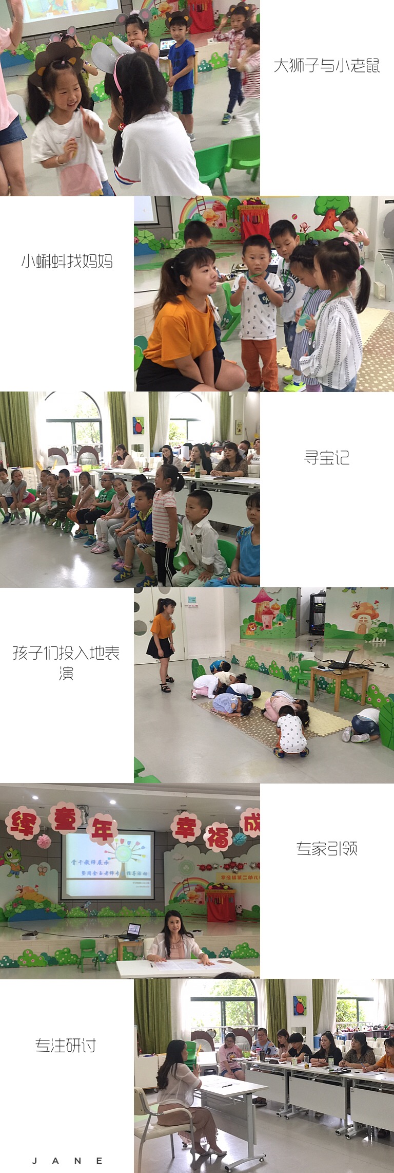 此次展示活动分别展示了小班的表演活动《小青蛙找妈妈》、中班的表演活动《大狮子与小老鼠》、大班的科常活动《小贝挖宝》。