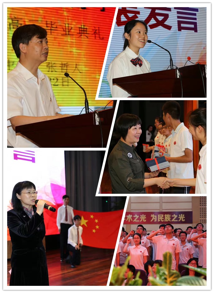 来自高三的学生代表上台发言,道出了每位同学心中对亲爱的母校的眷恋,对三年同窗的不舍,以及对一直以来辛勤付出的老师和家长的感谢,并表达了“整装行囊,重新出发,一路前行,不负韶华”的决心和信念。家长代表的发言,表达了对老师为孩子默默付出的感谢以及对孩子三年来成长的欣慰和肯定。随后,教师代表发言,满怀深情地对同学们今后的人生提出了建议,寄予了期望。