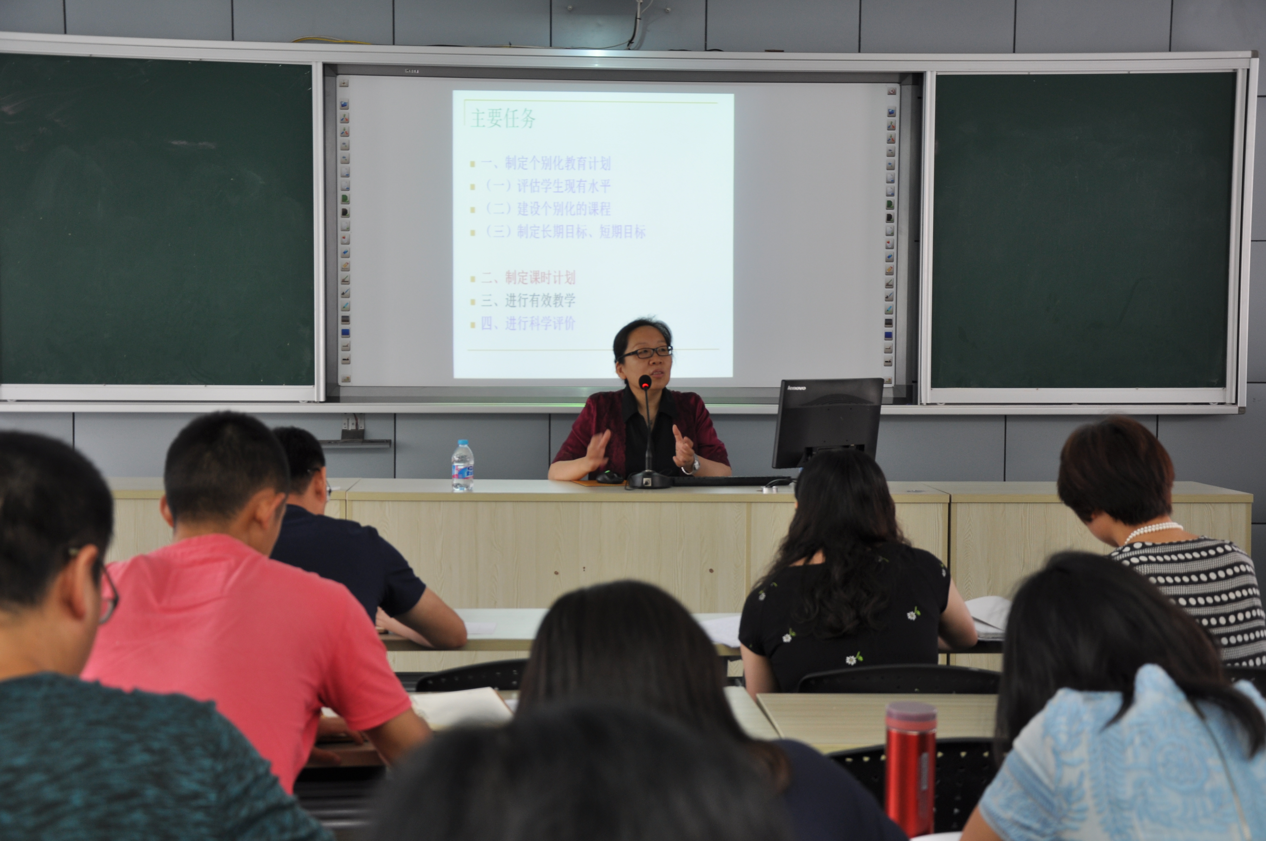 于老师的讲座就如何根据随班就读学生制定个别化教育计划、制定课时计划、进行有效教育、进行科学评价四个方面展开了详细介绍。于老师结合了自己在随班就读调研中的案例,深入分析了一些随班就读教育存在的一些问题。同时,她对如何推动随班就读生的个别化教育,提高特教质量提出了具体的适时建议。于老师的讲座对进一步规范学校特殊教育课程有着一定指导意义。