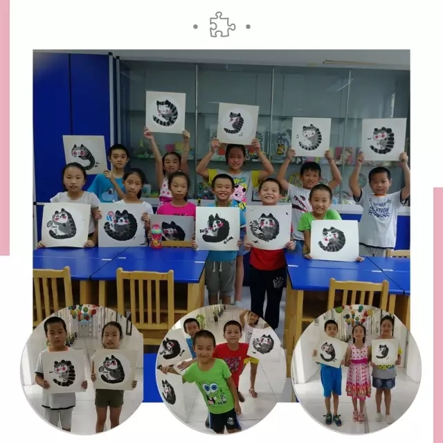 儿童国画:8月12日,一大早四年级的同学们,来到学校暑期梦乐园开展儿童国画的学习,同学们画的猫猫像模像样。低年级的小朋友也来了,他们不甘落后,虽然,他们手上的控制能力有待提高,但正是这种特点使他们的作品自带萌萌的感觉。