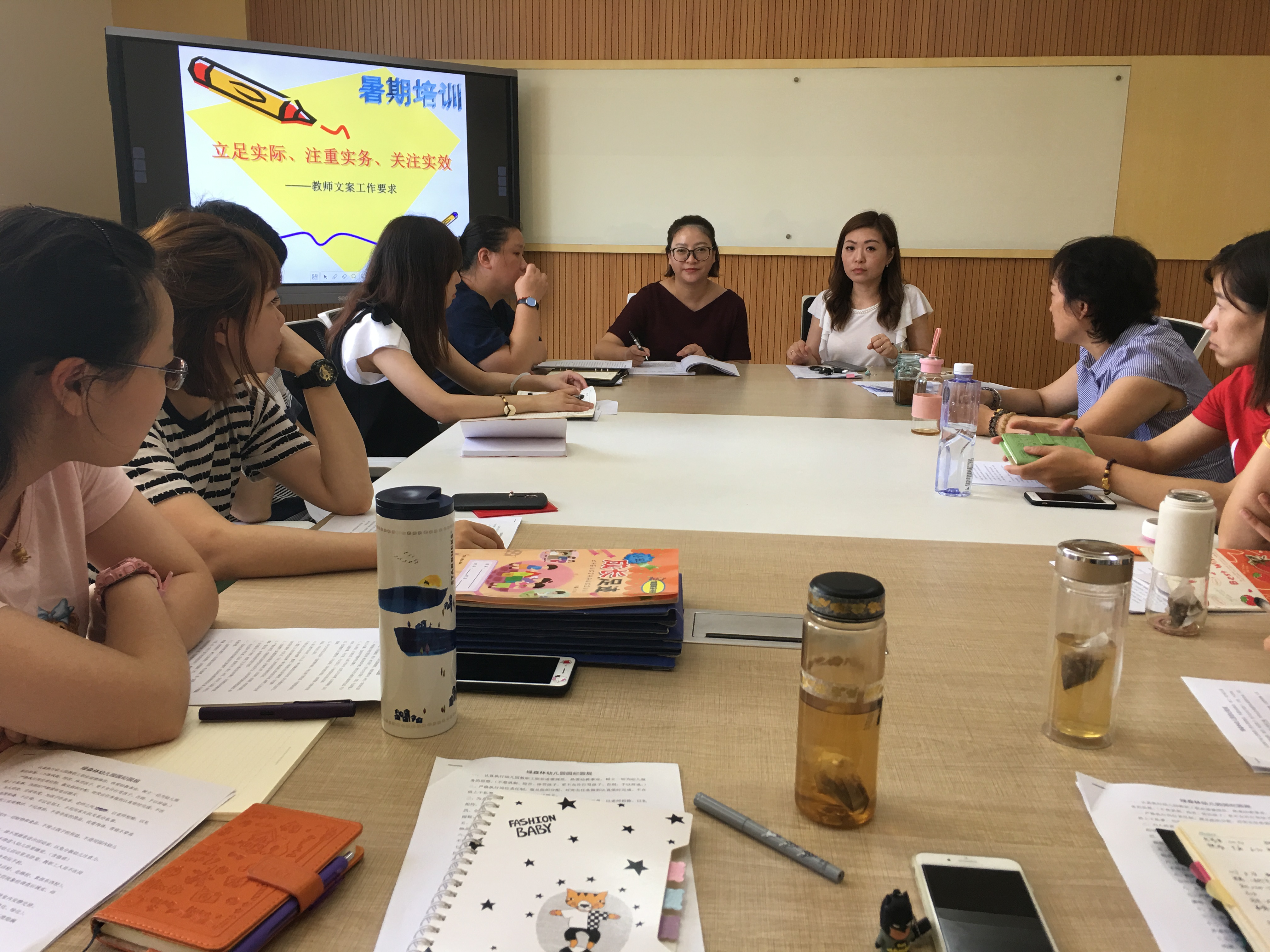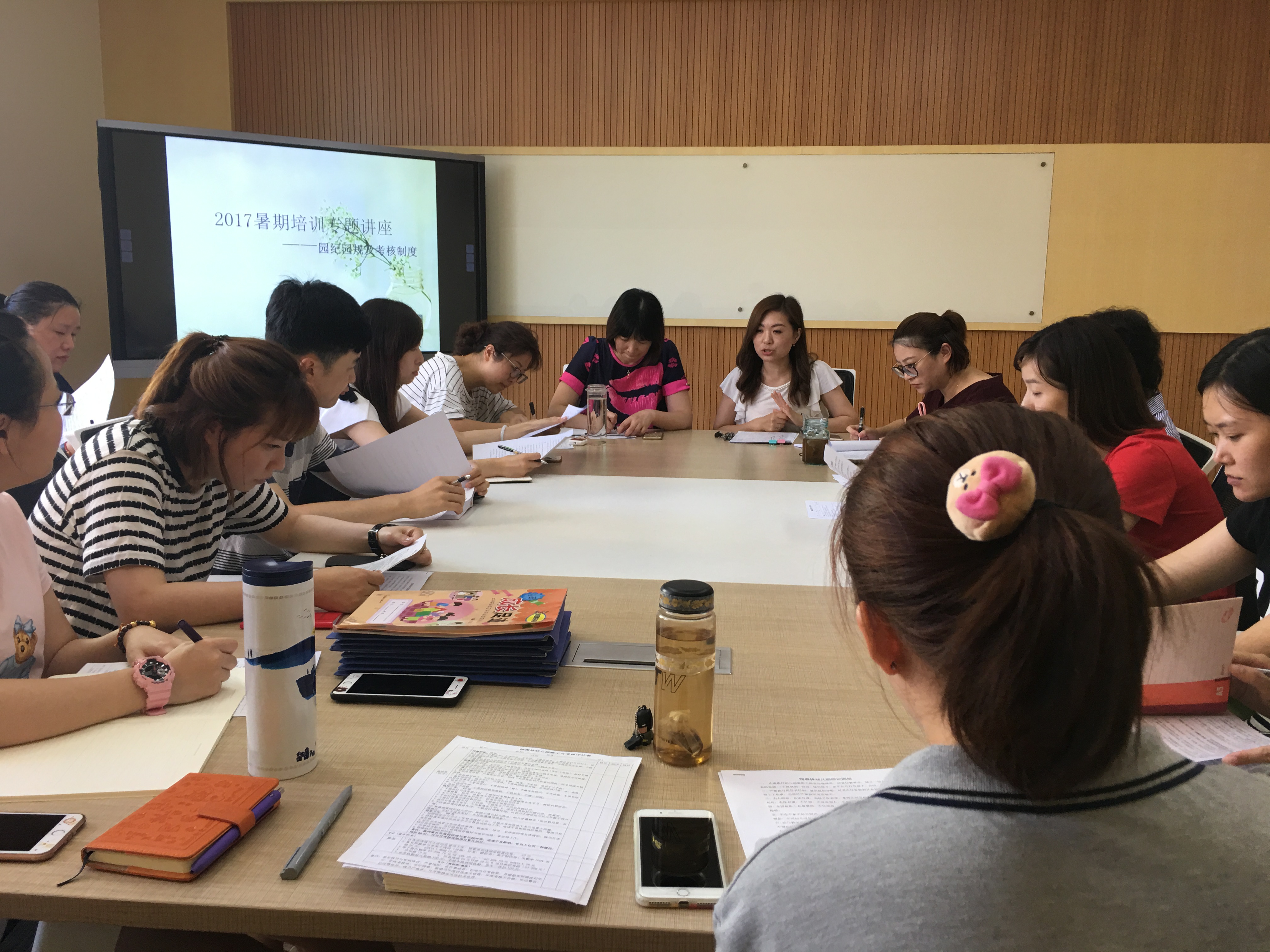 8月18日的下午,大教研组长严老师还为全体教师进行了关于教师文案撰写工作要求的讲座。本次讲座包括了周日计划、月课程计划、学年计划与小结及案例等等各类文案的撰写要求,全体教师再一次清晰、直观地了解了本园的文案撰写。