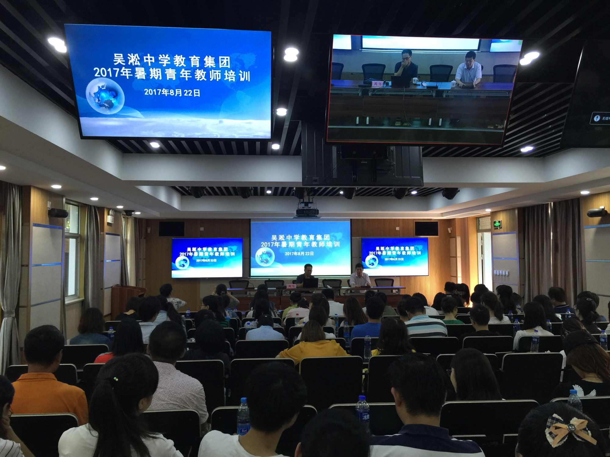 2017年8月22日上午,吴淞中学教育集团2017年暑期青年教师培训活动举行。本次培训活动特别邀请到上海市特级教师周飞老师,他为大家做了题为《变与不变——对当下教育的思考和建议》的报告。参加此次培训的有来自和衷小学、宝钢新世纪学校、长江第二中学、高境三中、海滨二中、海滨中学、和衷中学、华师大宝山实验学校、淞谊中学、吴淞初级中学、吴淞实验学校、月浦中学、吴淞中学十三所吴淞中学教育集团近百名青年教师。