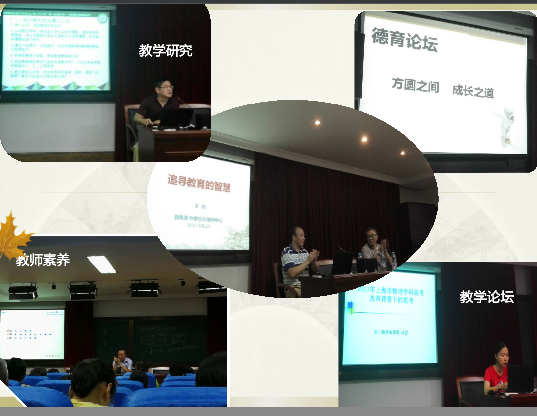 此次培训中,闸北八中管理团队的专家开设了《上海市高考新政环境下的课程安排及教学管理模式探究》、《依托“成功教育” 推进项目研究 助力学生成功》等系列讲座。素质教育呼唤教育改革,需要转变传统教学观念,努力探索新政环境下的课堂改革办法,来满足教师、学生与家长的认同感、获得感,减少他们的焦虑感。培训还有幸邀请到了嘉定二中的周凤林校长,周校长开设了《论班级管理要诀与教师素养》的讲座,跟宝中的老师们聊教师工作的“十五字”:德、爱、诚、责、谦、行、礼、公、严、实、恒、细、勤、习、思。华师大教育部中学校长培训中心王俭博士给老师们带来了《追寻教育的智慧》,智慧的要素包括理念的重量、道德的重要、认知的基础、实践的指向,智慧是由经验感悟而来的,教师在悟与度中知行合一、止于至善,追求教育的智慧。