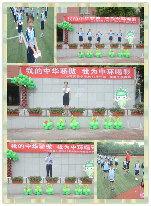 庄严的升旗仪式之后,中环暑期优秀小队向全体师生们展现了他们暑期开展的丰富多彩的活动;诗歌朗诵《我骄傲,我是中国人》令在场的每一位师生心潮澎湃,为祖国的繁荣富强而感到自豪;民警叔叔也来到了中环校园,为孩子们上了安全第一课;一年级新生们收到了中环梦之翼,小小的手儿托起了对小学生活的无限展望;最后,校长致辞,号召全体师生一起为梦想启航!“我的中华骄傲 ,我为中环喝彩”,本次开学典礼向学生们传递了“爱祖国、爱校园”的精神,希望每一个孩子能够树立为共产主义远大理想和中国特色社会主义共同理想而奋斗的信念和信心。