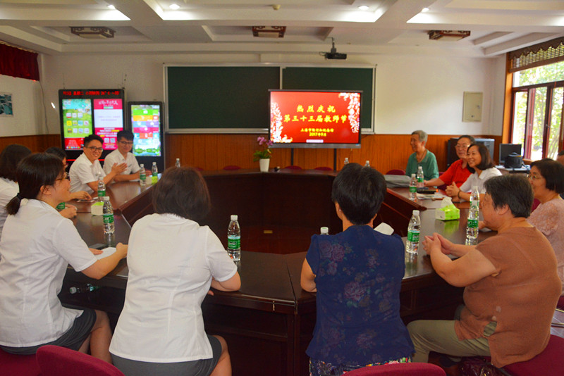 为庆祝第33个教师节,上海市陶行知纪念馆全体员工与退休教职员工欢聚在行知堂。