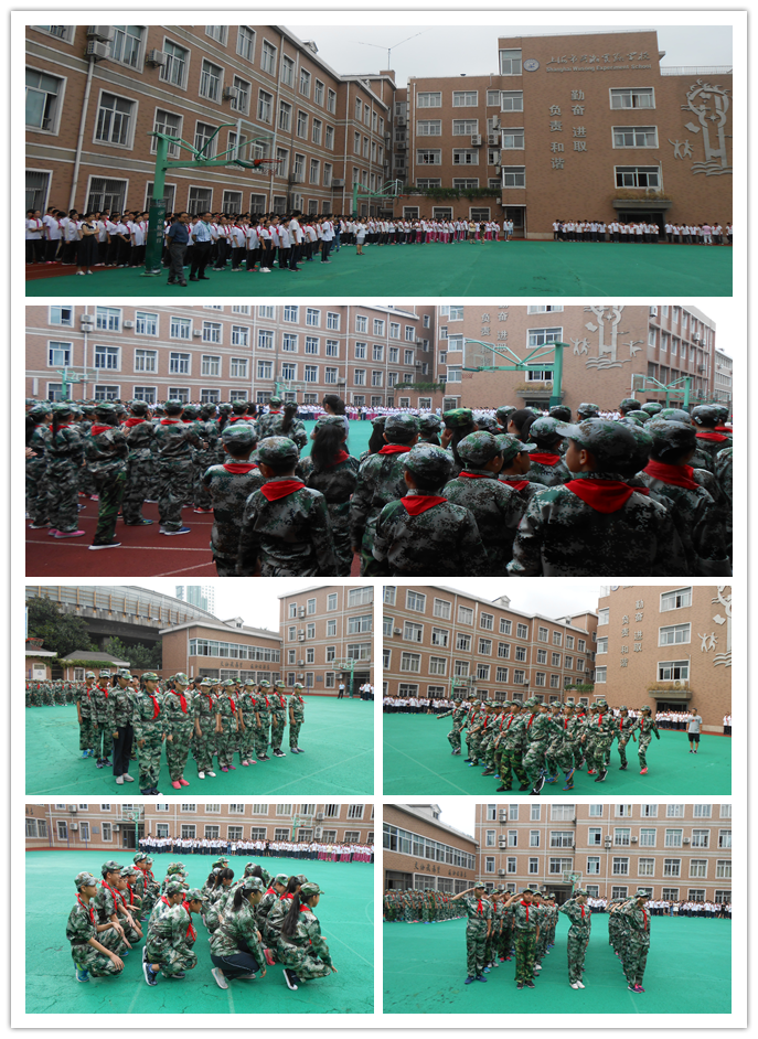 2017年9月11日上午,吴淞实验学校六年级新生在学校操场举行了军训汇演。