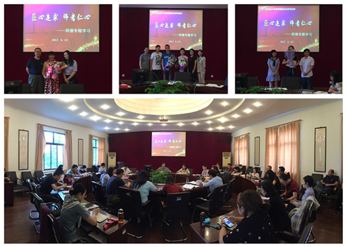 2017年9月15日上午,宝山区少年宫全体教职员工聚集一堂,开展了以“匠心追求师者仁心”为主题的师德专题学习,也拉开了我宫今年师德建设月活动的序幕。