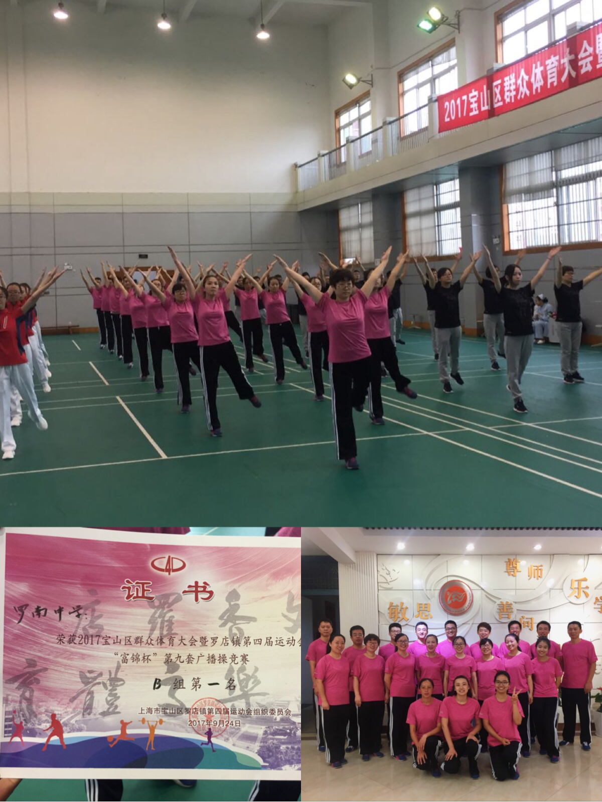 2017年9月24日上午,宝山区群众体育大会暨罗店镇第四届运动会“富锦杯”第九套广播操竞赛在罗南中学举行。此次竞赛共有罗店镇各村、居委、机关、公司企事业、驻军警部队38支参赛队伍。