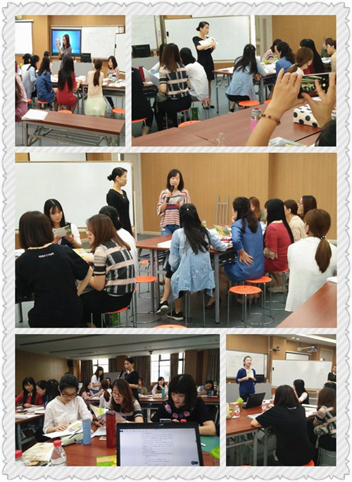 一个上午的研讨活动,王老师以一个个生动的例子,从一字一句的剖析,让组内老师针对一篇篇绘本,通过小组形式的讨论、研究、实战训练,随后以微型教学的形式展现出来,最后再来探讨其中的问题,使教研组的每一位成员获得不一样的收获。王老师还把她总结出的经验和先进理念整理出来,以便大家在日后的教学和写作中运用。