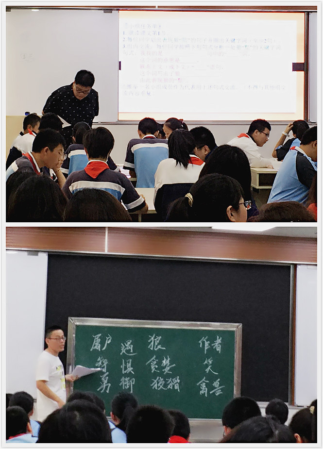 下午,宝山区语文教研问题化团队、学科指导团队、首任初三教师及各校教师代表参加了此次教研活动。主题活动在新民实验学校的金老师和高境三中顾老师的同课异构中逐步推进,金老师通过生动的课堂问答激发学生对文言文学习的兴趣,注重落实文言基础,着力指导低学段学生文言文学习的方法;顾老师则从文本解读问题化的角度带领学生梳理文路,以问题链的形式总结叙议结合类小说的学习路径。