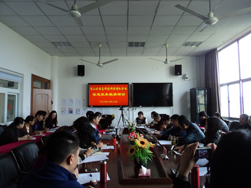 首先上海农场学校的信息课姜老师和数学课王老师分别给我们带来了一节公开课。两位教师充分运用信息技术,精心创设问题情境,注重学生的自主学习,让学生在一个个问题生成中研究探索,激发了学生学习的兴趣和求知欲望,课堂气氛活跃,教学效果好。接着信息中心教研员与教师们进行评课活动:两位执教教师先进行了说课,评课中对两位教师熟练地运用信息技术进行备课和课堂教学进行了肯定,对教学目标、教学环节设计、教态等给与了肯定;同时也指出了不足点,提出了建议。
