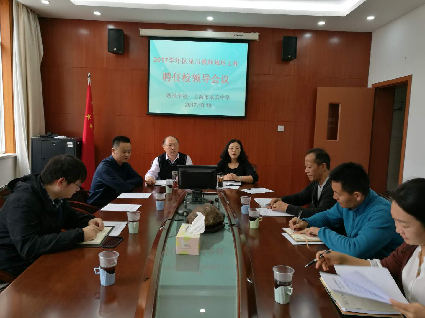 作为宝山区见习教师规范化培训基地学校之一的求真中学2017学年将对来自泗塘中学、泗塘二中、虎林中学、吴淞二中、庙行实验学校、共富实验学校、顾村实验学校、乐之中学及求真中学本校的21位见习教师进行规范化培训。2017年10月19日上午,求真中学召集了见习教师所在的聘任学校的分管领导召开本学年的聘任学校领导会议。