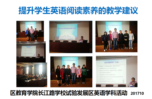 长江路学校试验发展区六所学校的英语老师于近日汇聚在吴淞二中参加英语学科活动,聆听了普陀区英语教研员朱成老师的讲座《提升学生英语阅读素养的教学建议》。