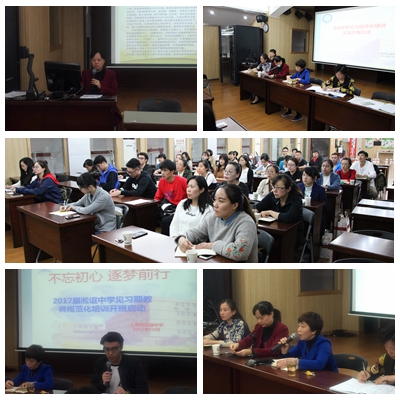 2017年10月27日,淞谊中学于开课教室举行了2017届见习期教师规范化培训基地的开班仪式。我校领导班子、带教老师和全体见习期老师参加了会议。