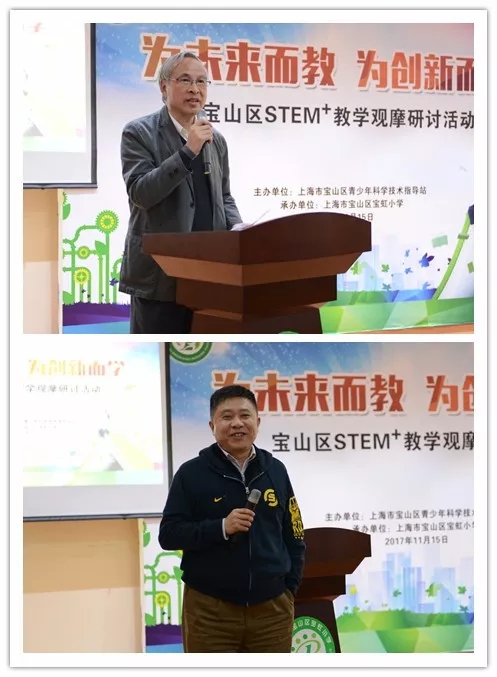 11月15日下午,以“为未来而教,为创新而学”为主题的宝山区STEM+教育教学观摩与研讨活动在宝虹小学举行。上师大的沈荣祥教授、秦浩正教授,宝山区少科站、区教育学院教研员、海丰农场学校校长,以及各STEM+教育发展试点校、校外教育研究团队、STEM+教育发展教研组教师参与了此次活动。