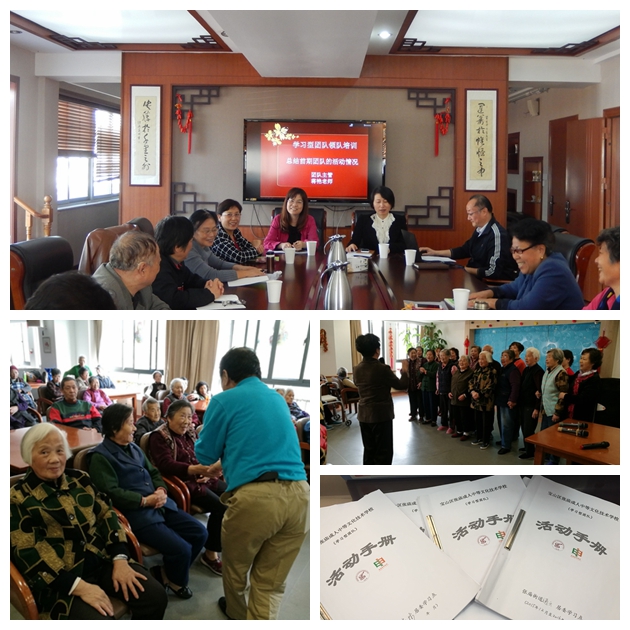 积极扶持和培育优秀老年学习团队,一直是我们工作的重中之重,我们坚持倡导团队运用自主、合作和探究的学习方式,通过互相学习、互相交流、互相启发,以期达到共同进步的目的。作为社区教育的管理者,我们要做的事是如何强化团队的自我调控管理的能力,如何在管理的过程中运用一定的策略助推团队共同进步。同时作为团队建设的推进者首先要有创新理念,除了创新,还要注重适宜。我们针对团队的发展水平创新地采用梯度推进学习团队发展的运作策略,也在实践中不断地修正策略和方法。同时我们还组织学习团队积极参与为养老院送教活动,充分发挥老年学习团队“学以致用”,参与社区和谐和社区自治建设,让更多老年人享受高质量的老年教育服务。