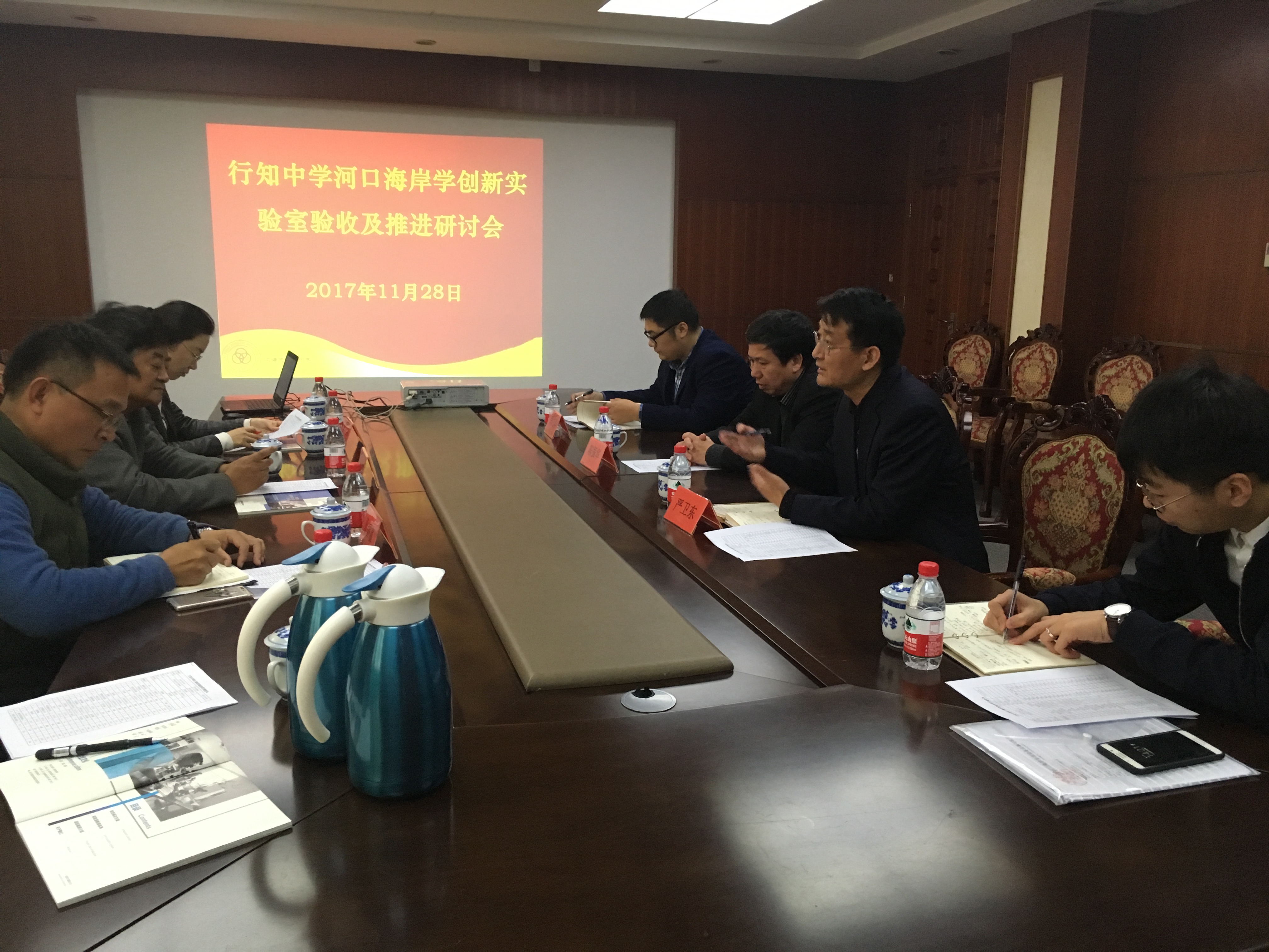 2017年11月28日下午,行知中学河口海岸学创新实验室验收和推进会议召开。会议邀请了华东师范大学河口海岸学国家重点实验室的专家对新建的河口海岸学创新实验室进行验收和指导。与会的专家有张利权教授、童春富副教授、袁琳副教授和霍晓丽老师。行知中学相关领导和实验室负责人参加了会议。