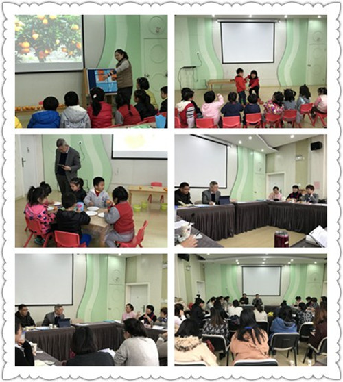 本次研讨的主题是《数活动的游戏化设计》,活动开始,首先由通河新村幼儿园的区学科带头人张老师和慧华幼儿园的区教学能手陈老师分别进行了中班《有趣的橘子宝宝》和小班《猜糖果》的课堂活动展示,两位老师基于幼儿的年龄特点,以游戏的形式贯穿活动全过程。在课堂上,两位老师十分关注学生学习的过程和幼儿的情绪体验,让每一个孩子体验到成功的快乐。课后,两位老师介绍了自己的设计意图。随后,听课老师纷纷就本堂课提出了自己的想法和问题。专家潘小明与各幼儿园老师针对两个数活动的游戏化设计以及大家的思考展开了一场“头脑风暴”,你一言我一语,有问题有回应,大家相互切磋、在思维的碰撞中,闯出了新思路,尤其是在潘老师幽默的语言、精准的点评中一个个问题迎刃而解。让大家见识了名师的功力和与众不同的思考路径。两位执教老师在潘老师的点拨下豁然开朗,受益颇多。