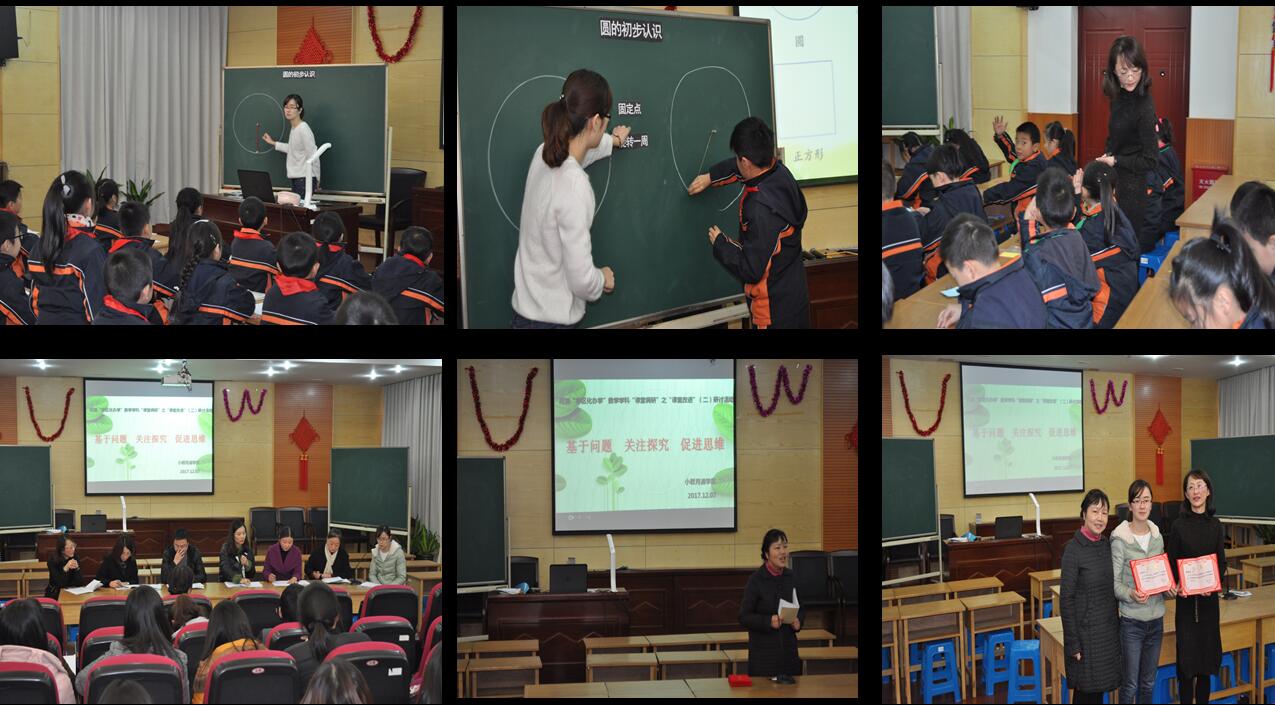首先我们全体老师观摩了石洞口小学陈老师和月浦二小郁老师执教的两堂数学展示课,执教教师带领学生开展猜测与验证,通过测量、动手折等方法找特征,学生从徒手画圆到绳子画圆、再到圆规画圆,在一次次实践中加深了对圆的感悟,揭示圆的本质特征。两节课都以认识图形的特征为载体,一节关注猜测与验证的方法,一节关注学习体验中认知的逐步完善,学生经历学习,学会方法,促进学生核心素养的发展。