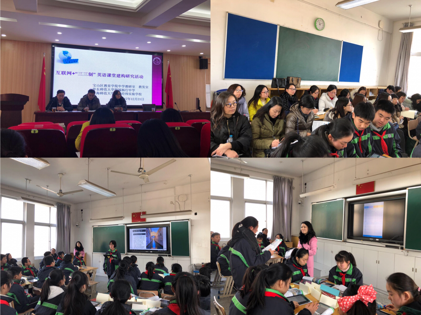12月21日下午,宝山区初中英语骨干研究团队在华师大附属杨行中学开展题为互联网+“三三制”英语课堂建构研究活动。区教育学院教研室、教发室、区初中英语研究团队、“三三制”英语研究团队、“三三制”研究团队部分成员共同参与了课堂教学研讨活动。