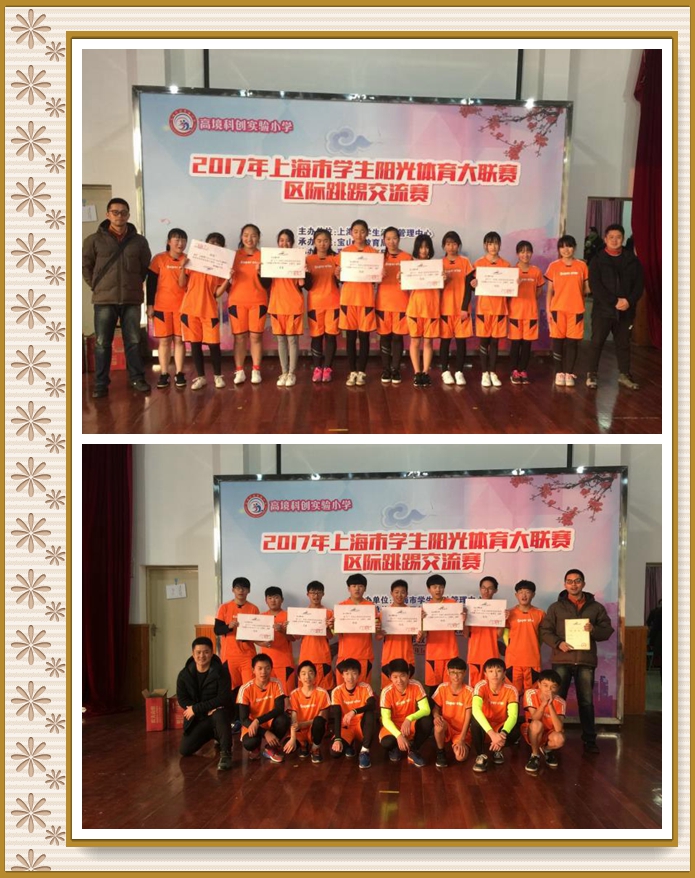 12月16日下午,2017年上海市学生阳光体育大联赛区际跳踢交流赛在高境科创实验小学举行,本活动由上海市学生活动管理中心主办,宝山区教育局承办,嘉定区教育局、杨浦区体教结合联席会议办公室、太仓市教育局协办。