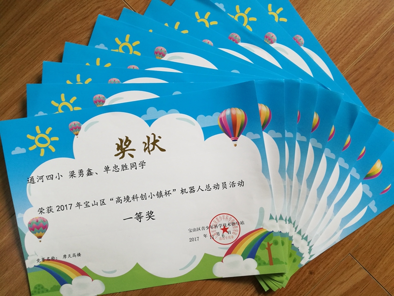 日前,通河四小参加宝山区“高境科创小镇杯”机器人总动员成绩出炉:我校梁勇鑫等五位同学分获三个项目一等奖;张瑞超等五位同学分获三个项目二等奖;丁卓然等四位同学分获四个项目三等奖。