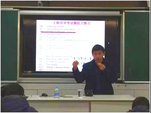 芮老师先从“上海市中考话题给力整合”开始,从历届中考考题分析了中考英语写作的特点,通过话题讨论,让学生结合自己的实际英语水平,在理解的基础上用书面表达来完成近几年的中考写作话题。再通过“四审四注意写作法”,和对中考英语作文常见语言错误调查的分析,让学生学会自我检查、自我修改和自我完善。最后,芮老师为同学们介绍了很多优美的英语成语、谚语,使学生们学会了使自己笔下的英语句子、篇章更优美、更富哲理的一些方法和技巧。