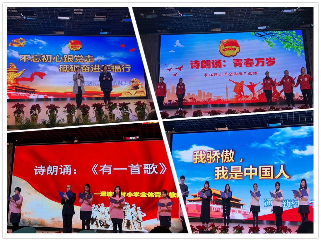 活动在激昂嘹亮的共青团团歌中拉开了序幕。第一个环节是由各校青年教师代表演绎经典作品中的名段,传递书香中的幸福。每一所学校的表演都各具特色,精彩纷呈。虎林路小学的青年教师带来了充满诗情画意的表演。通河三小诵读的《绿的歌》仿佛吹来了一阵清新之风。长江路小学青年教师用自己的热血高歌“青春万岁”。而红星小学的老师们始终不忘身为教师的初心,对孩子们说道“你慢慢来”,不忘过去,走向未来。三中心团队带领我们一同追忆了“不能忘却的长征”,承前启后。呼玛路小学的老师们吟诵了“不忘初心跟党走”。通河二小的老师们带来的是“习近平讲故事”,通河一小的青年教师由衷地赞叹“我骄傲,我是中国人”。正如泗塘新村小学的节目《同一首歌》一样,我们歌颂祖国、歌颂党,为这繁荣盛世献上一首赞歌。