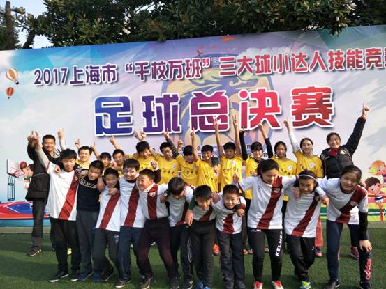 学校派出6、7年级,8、9年级两支队伍参加本次足球总决赛,经过与各个代表队的激烈角逐,分别获得了2017年度上海市学生阳光体育大联赛“千校万班”三大球小达人技能竞赛市级总决赛(足球项目六、七年级组,八、九年级组)一等奖。