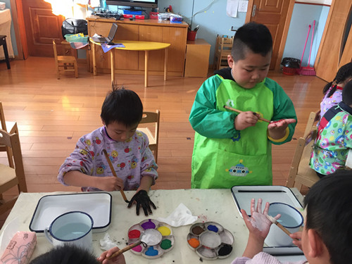 小班陈老师,在轻松悦耳的音乐声中,带领着孩子们点绘“美丽的大树”,引导孩子初尝水墨世界的美妙。中班郁老师,将西方大师保罗的色块画与中国传统水墨相结合,两者碰撞出的火花,让孩子感受不一样的水墨画。大班金老师,突破水墨画的传统模式,以有趣的手型故事引入,引发幼儿大胆想象,画出不同的动物形象。每一颗童心都蕴藏着一粒美好的种子,而我们的老师就是让那粒种子生根萌芽的源动力,在不断思考、研究的道路上为孩子们构建了一个个美妙的水墨世界。以别样的方式辞旧迎新。