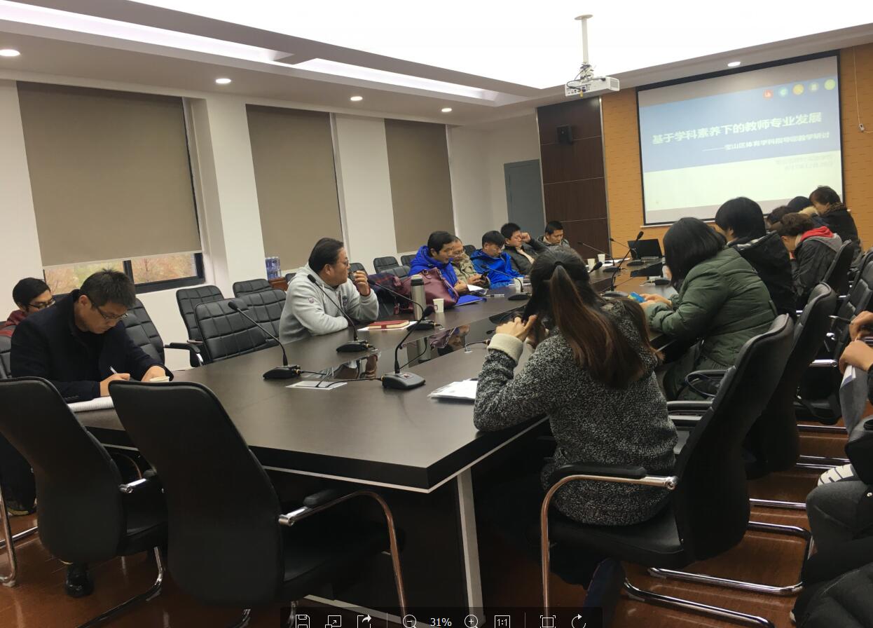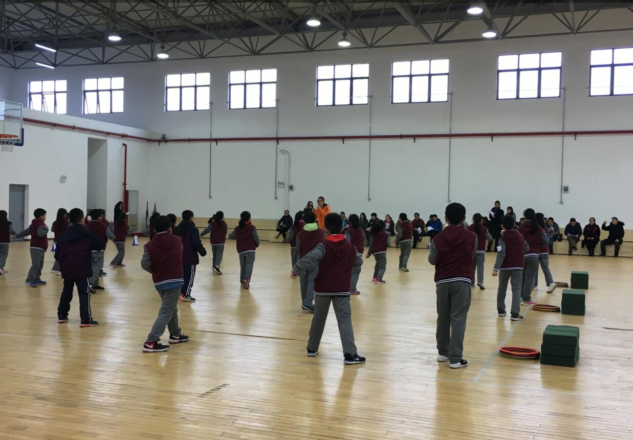 12月28日以《基于学科素养下的教师专业发展》为主题的宝山区体育学科指导团教学研讨,在顾村实验学校开展。四位新教师在学科带教老师的带领下一同参与了看课和研讨。顾村实验学校汤老师以单双脚跳为主题,开展了一堂生动有趣的体育课。汤老师利用了色彩艳丽的圈作为道具引导学生进行跳跃并开展了有趣的套圈小游戏。利用小长垫作为辅助工具,给学生创造了有易到难的跳跃障碍,课堂内容设计循序渐进,达到了应有的课堂运动量,也使学生感到了运动的乐趣。