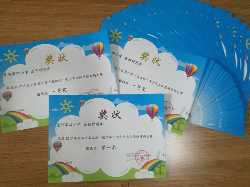日前,通河四小参加2017年宝山区第三届“通四杯”青少年立体思维建构大赛喜传佳讯:徐颢哲、翁羲豪同学分获图感类第一名、第三名,庄子昕等八位同学分获图感类项目两个一等奖、一个二等奖、五个三等奖;黄丽婷等十位同学分获解锁类两个一等奖、三个二等奖、五个三等奖;李文鑫等十位同学分获结构拼搭类项目一个一等奖、五个二等奖、四个三等奖;龚燕花等七位教师分获优秀指导教师奖。