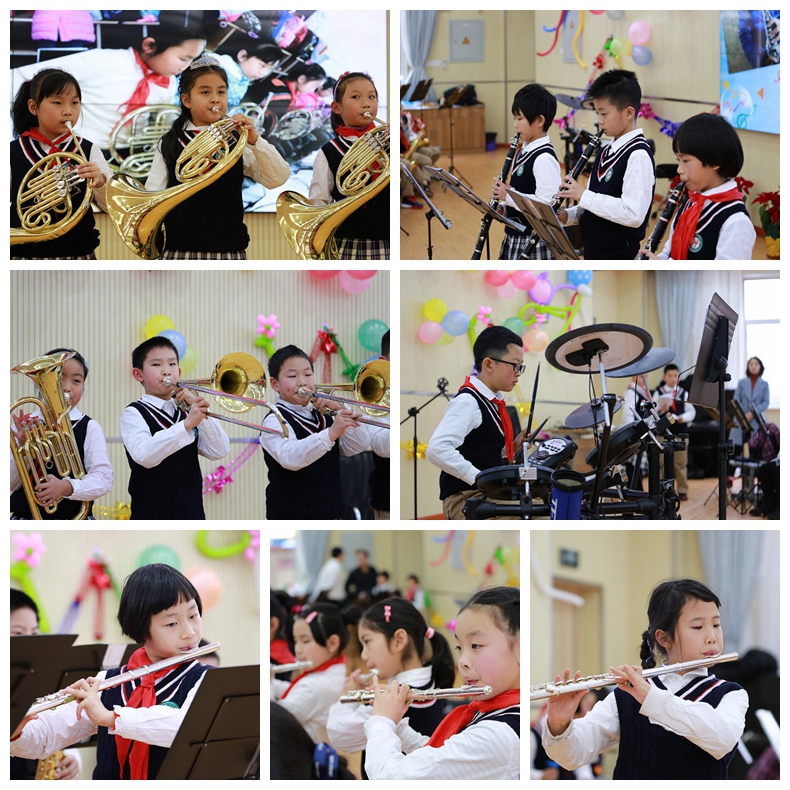 汇报演出中包括了:长笛、单簧管、萨克斯、小号、圆号、低音铜管、打击乐器的独奏、齐奏、小合奏等,形式多样丰富。队员们默契地配合,自信地演奏,个个有模有样,就像小演奏家。精彩的表现得到了老师和家长的认可。一首首熟悉的旋律,在耳畔回荡。