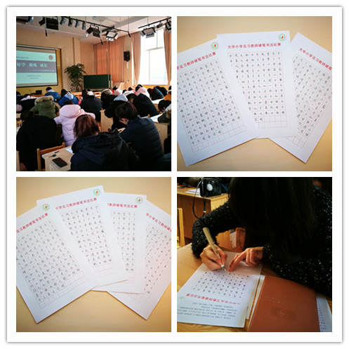 首先进行的是见习教师硬笔书法比赛。经过一学期的练习、成长,每位见习教师都写得整整齐齐,字迹或娟秀,或刚健,渗透着新一代教师的品行与素养。然后,周校长和各位见习教师一起回顾了本学期规培活动的点点滴滴,希望通过“陶馆之行”、“静附校教材解读活动”、“校内外的教研活动”,真真切切地帮助见习教师提升职业素养和专业能力。