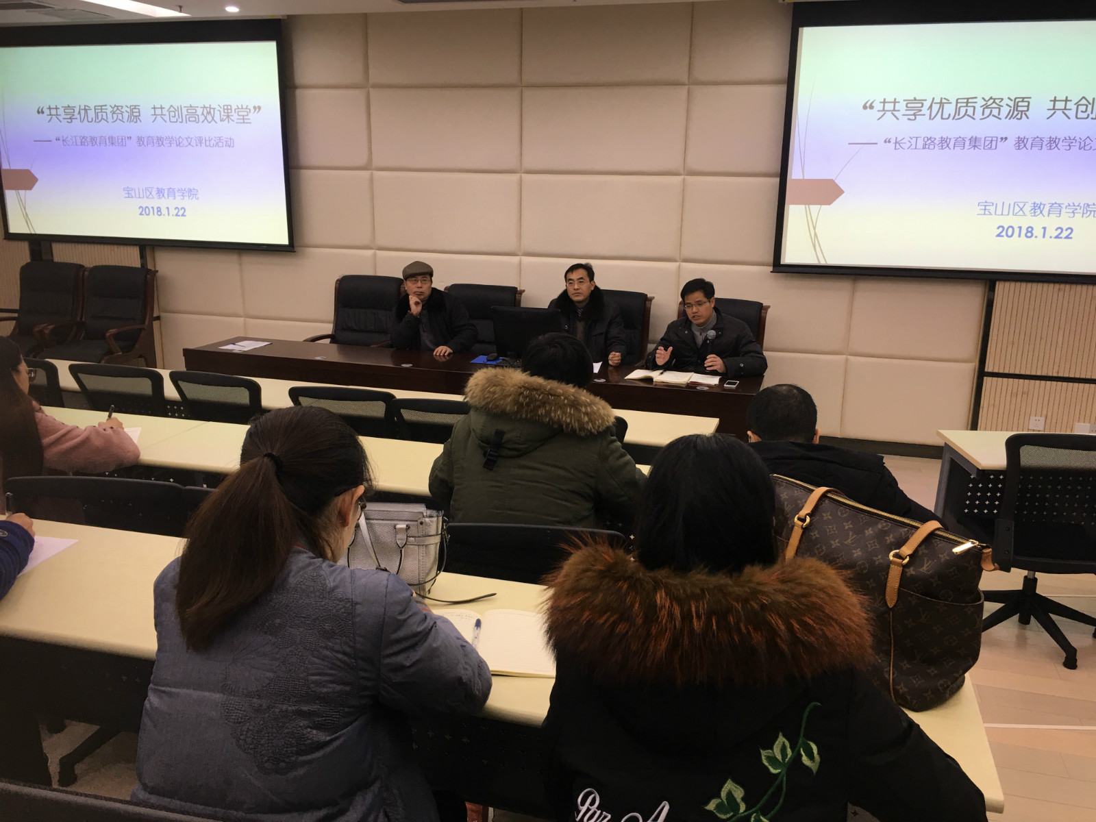 1月22日, “长江路教育集团”在宝山教育学院召开教育教学论文评选备会议。长江路教育集团内的各校领导、教导主任、学科中心组长以及部分教师参加本次会议。